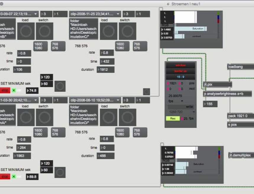 The machine combines two layers of Video material filmed by the artist with several cameras and qualities during the years. The machine chooses the material randomly and decides the length of each clip. So the two video layers will never come together in the same way again.
